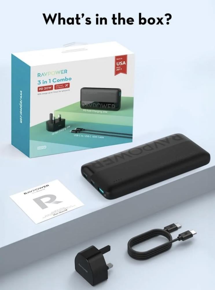- منفذ USB-A ومنفذين USB-C: شحن ما يصل إلى 3 أجهزة في نفس الوقت.
